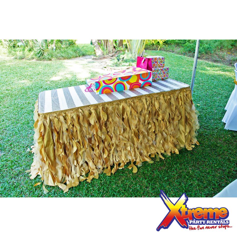 17ft Curly Willow Table Skirt- Gold