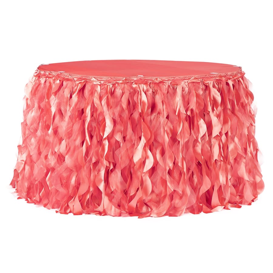17ft Curly Willow Table Skirt- Coral
