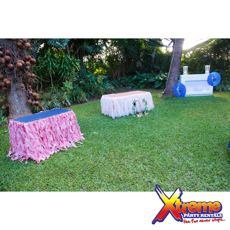 We prefer to setup on grass areas. However, smooth concrete areas are also accepted. The type of surface you choose to setup on is very important. We reserve the right not to setup on sandy, rocky or gravel areas of any kind with our inflatables and some linens. It causes damage and deterioration to the rentals and increases wear and tear to the vinyl products.