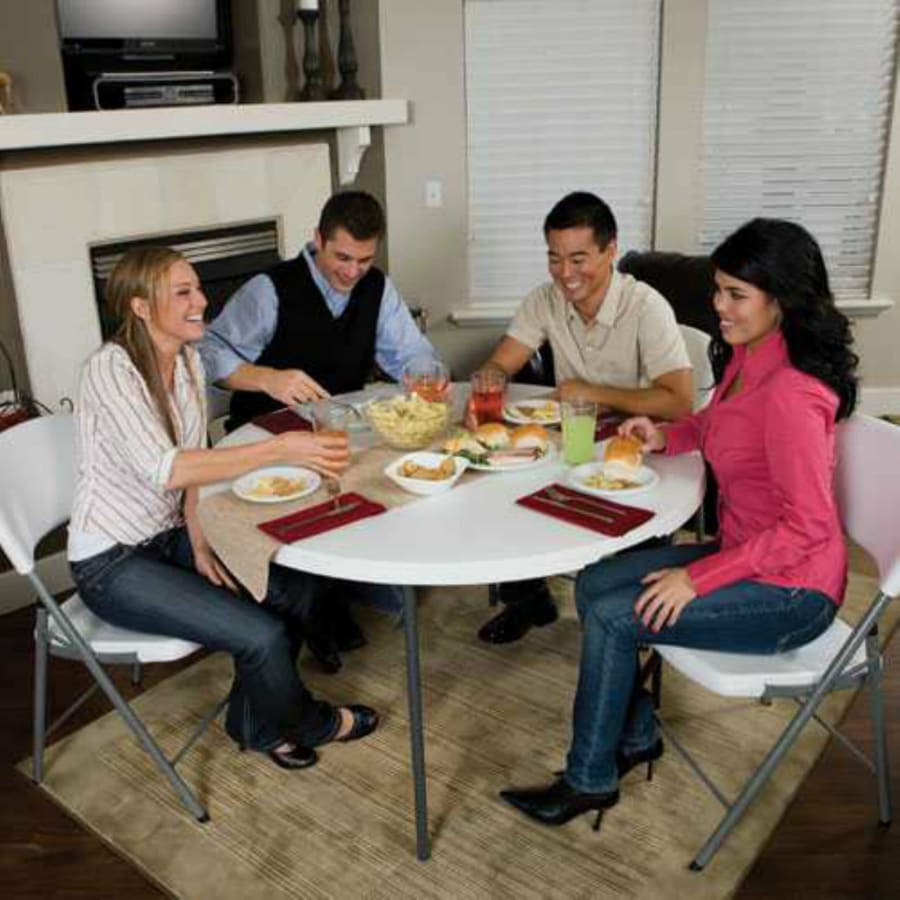 Round 48" tables can sit 4 to 8 persons depending on size. These portable tables are the perfect seating arrangement for a multitude of event applications which range from weddings to baby showers or any special event.