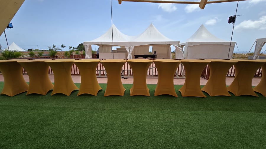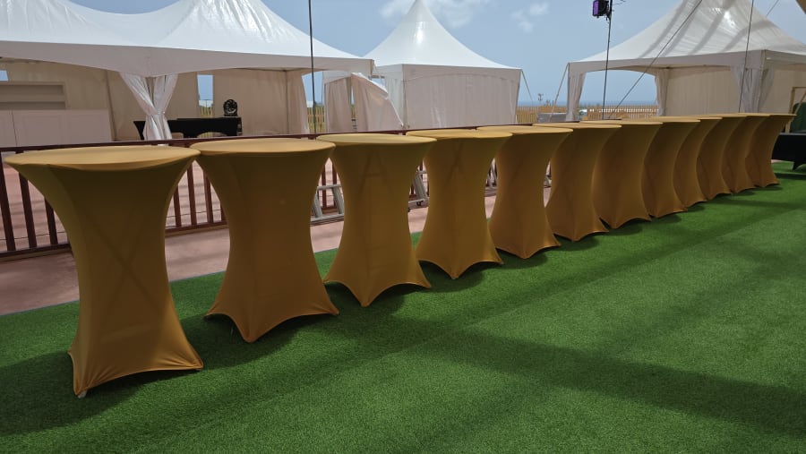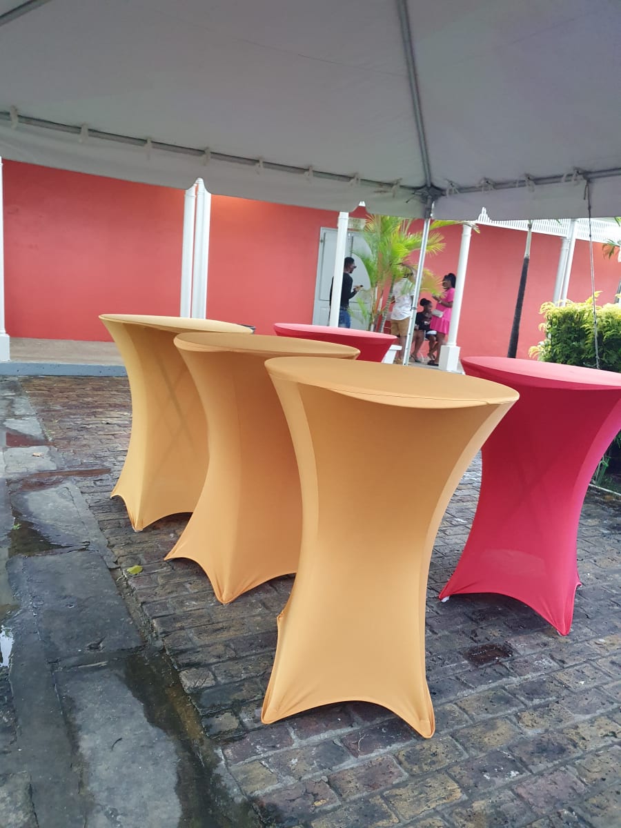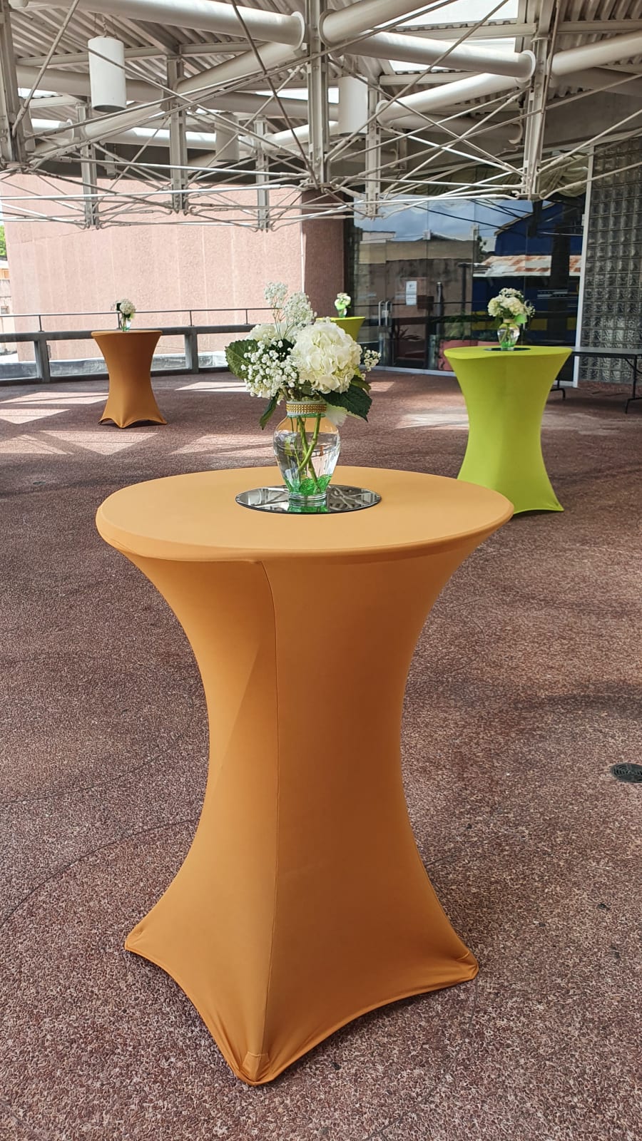 Our cocktail table with cover package is the perfect combo for decorators, event planners and any party host. They are suitable for events such as weddings, birthdays, showers, dinner rehearsals, corporate parties, simple family functions and whenever there is a requirement for functional, practical tables that are easy to use and to transport.