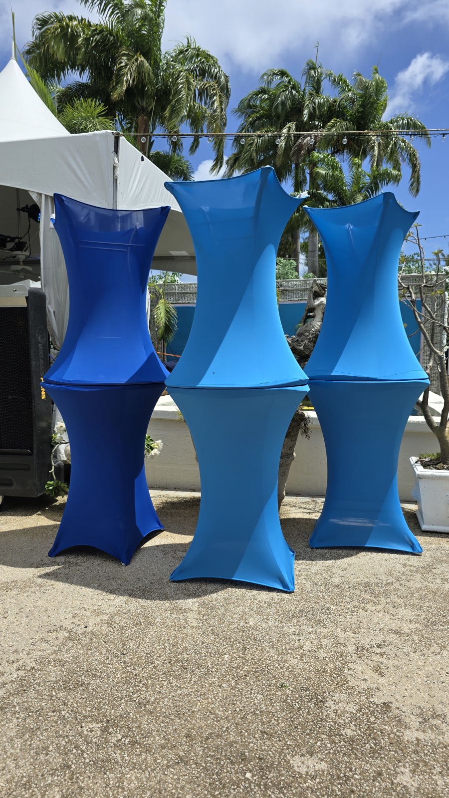 Our cocktail table with cover package is the perfect combo for decorators, event planners and any party host. They are suitable for events such as weddings, birthdays, showers, dinner rehearsals, corporate parties, simple family functions and whenever there is a requirement for functional, practical tables that are easy to use and to transport.