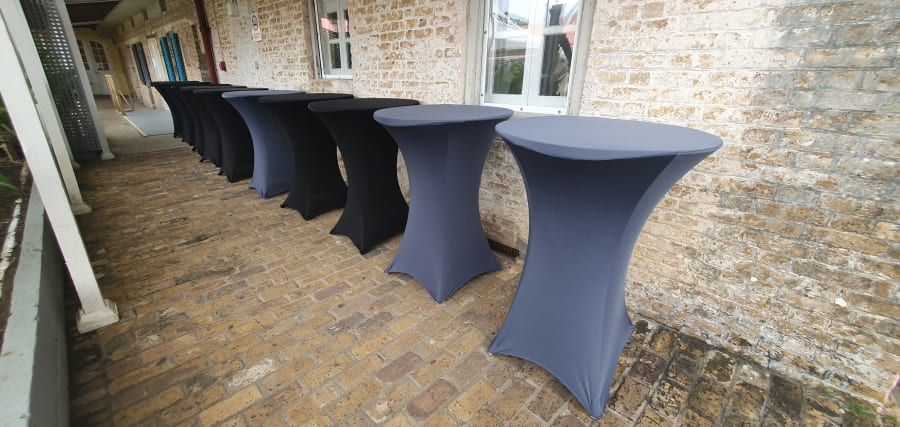 Our cocktail table with cover package is the perfect combo for decorators, event planners and any party host. They are suitable for events such as weddings, birthdays, showers, dinner rehearsals, corporate parties, simple family functions and whenever there is a requirement for functional, practical tables that are easy to use and to transport.