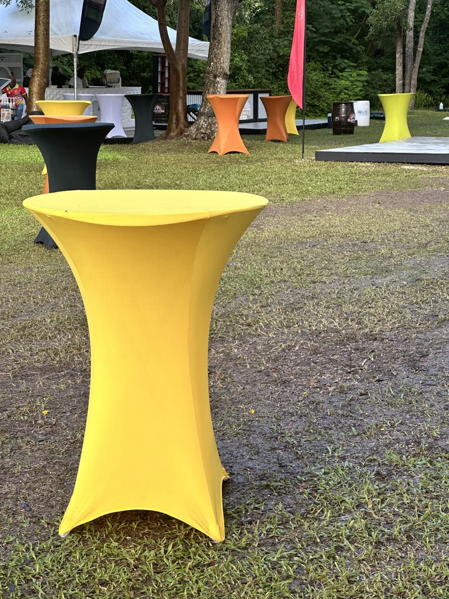 Our cocktail table with cover package is the perfect combo for decorators, event planners and any party host. They are suitable for events such as weddings, birthdays, showers, dinner rehearsals, corporate parties, simple family functions and whenever there is a requirement for functional, practical tables that are easy to use and to transport.
