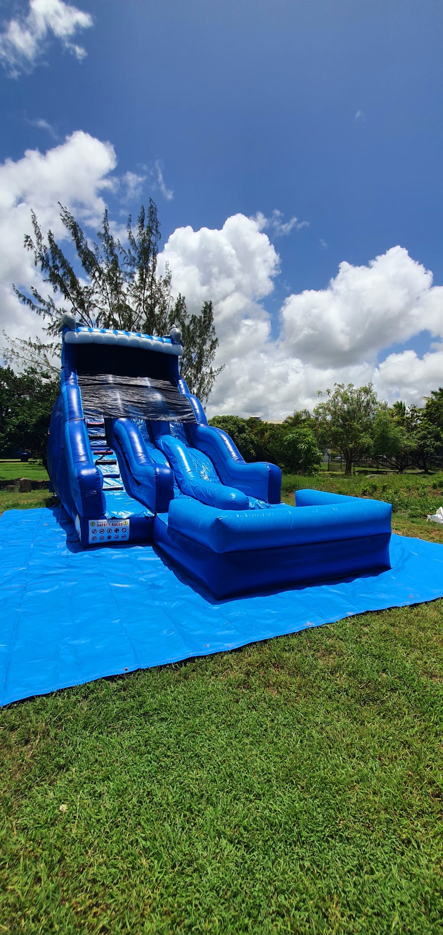1. Provide a Suitable Area: Customers must ensure a flat and clean surface, free of sharp objects, debris, and pet waste, that is large enough for the bounce house or waterslide.