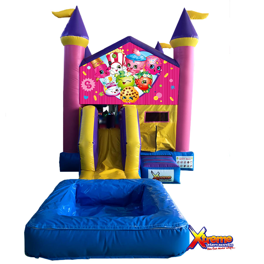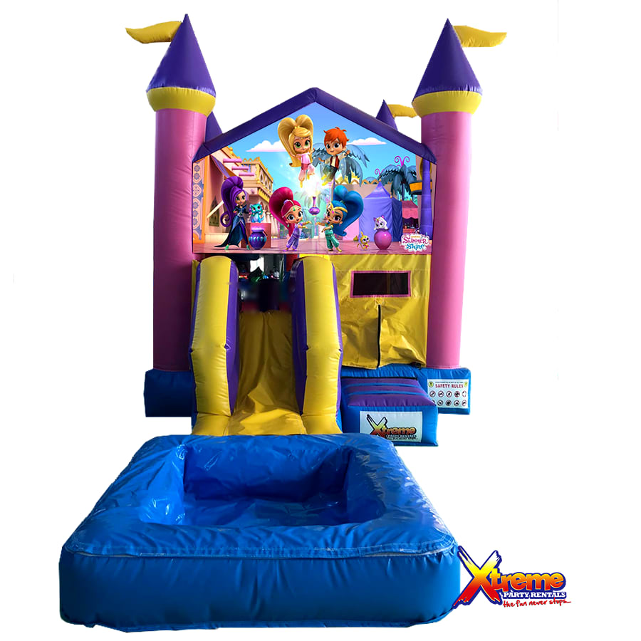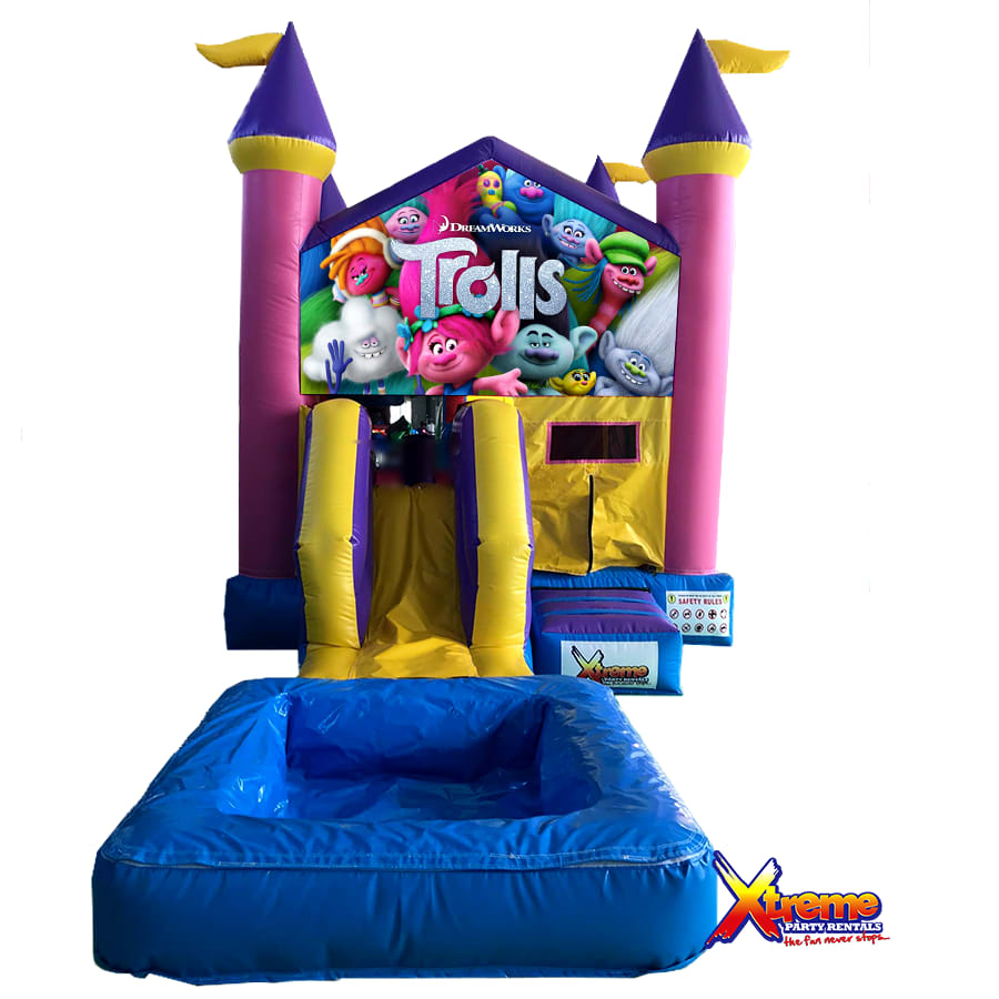 It features a splash pool at the front of the slide where kids can jump, soak and splash. For our dry option check out our Bouncy Castles