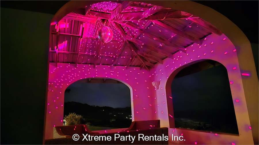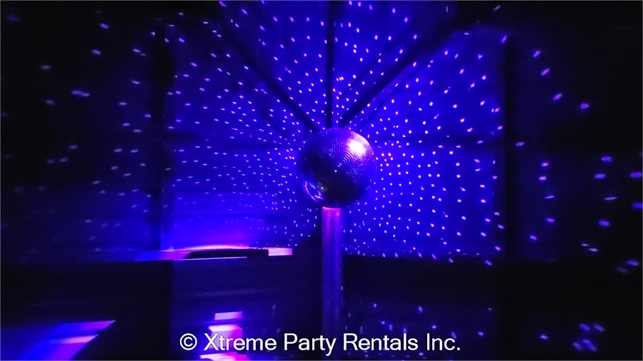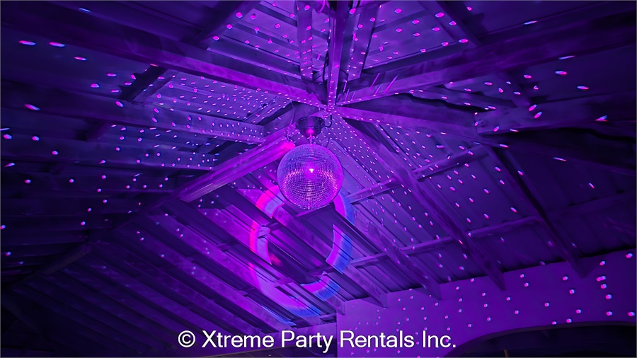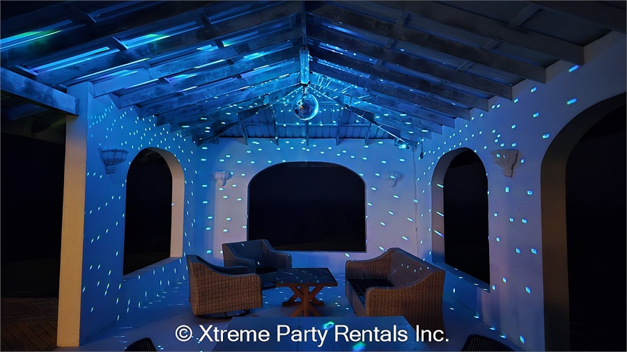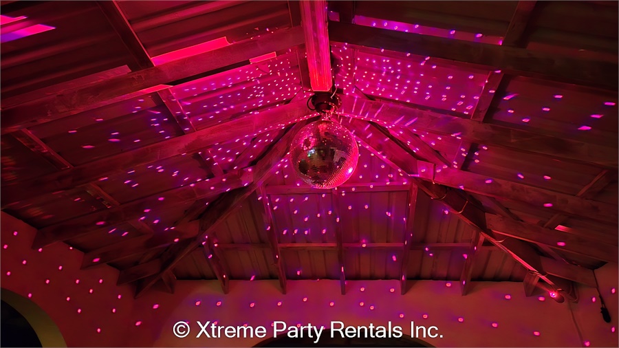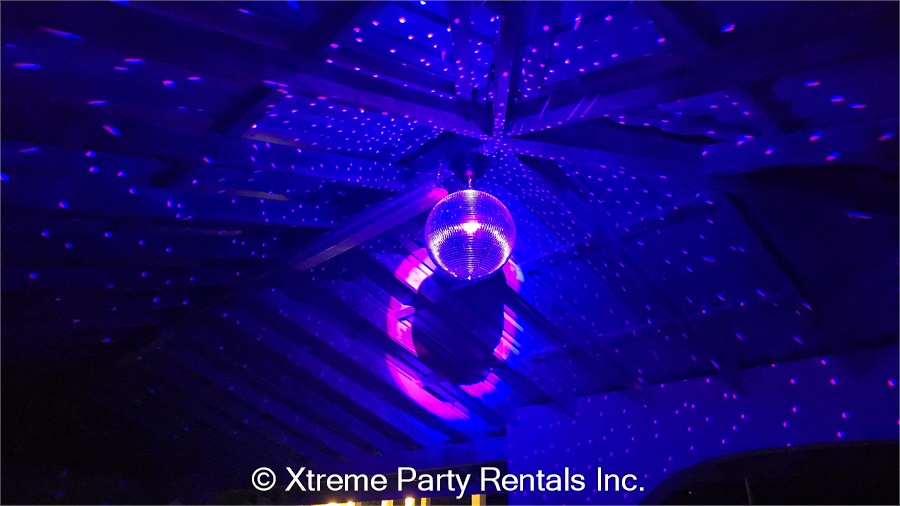 • mirror ball motor, stand, power cable with on/off switch, and white scrim
