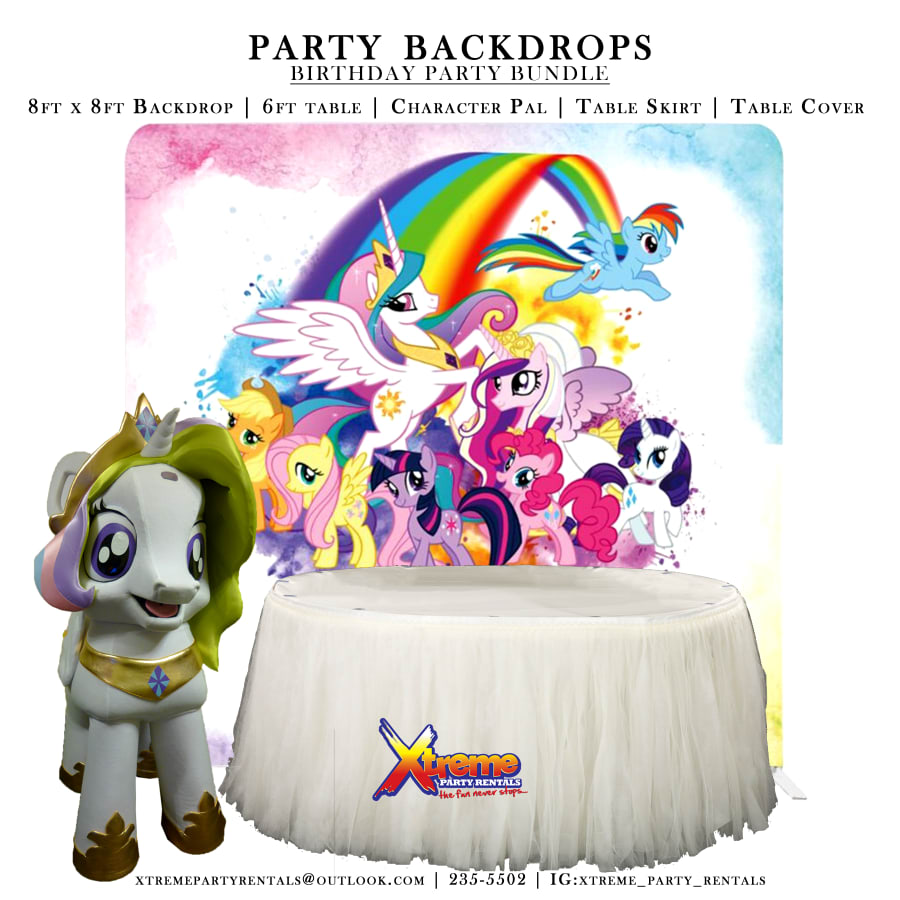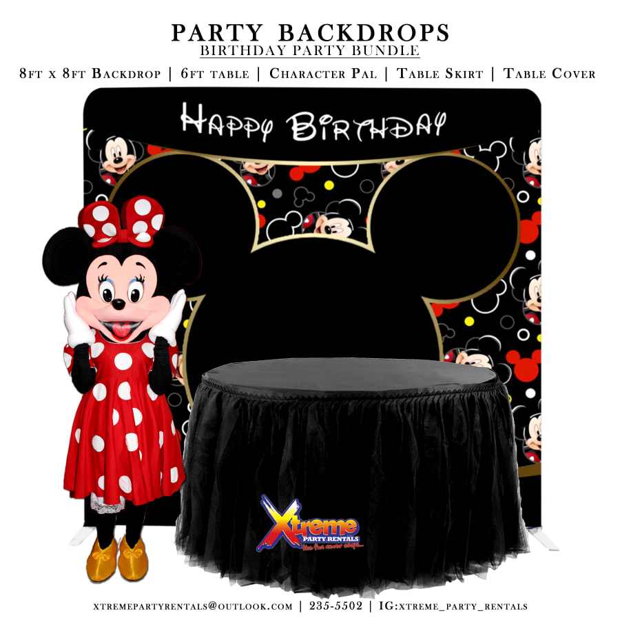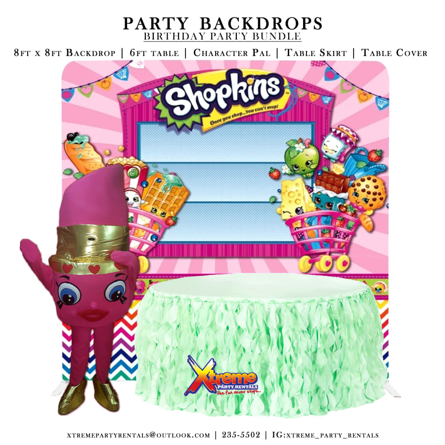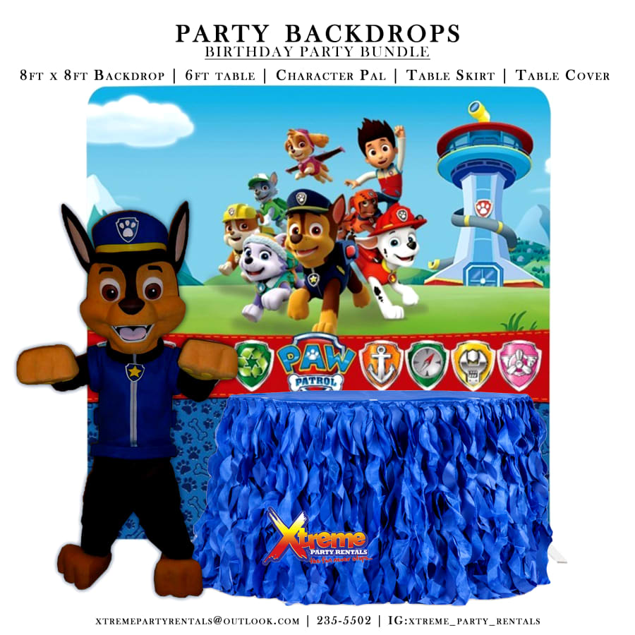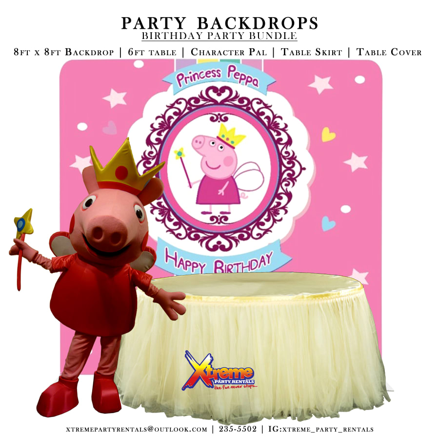 8ft Backdrop, Table Skirt & Character Pal