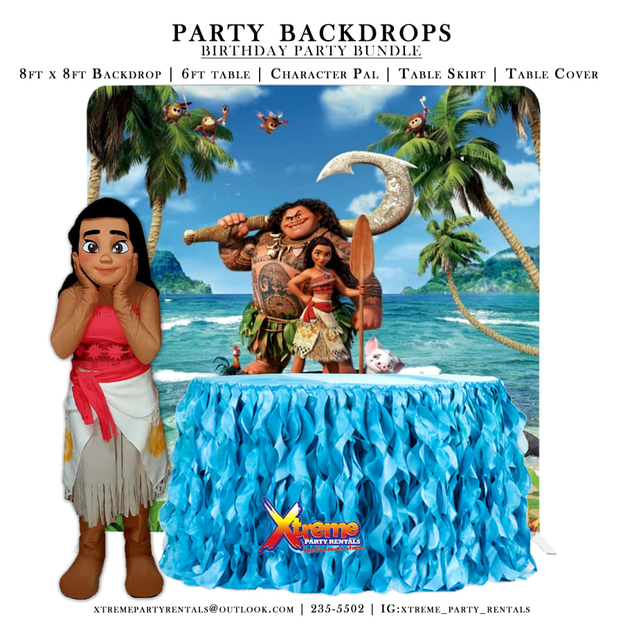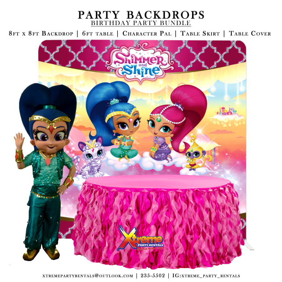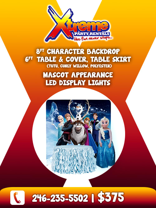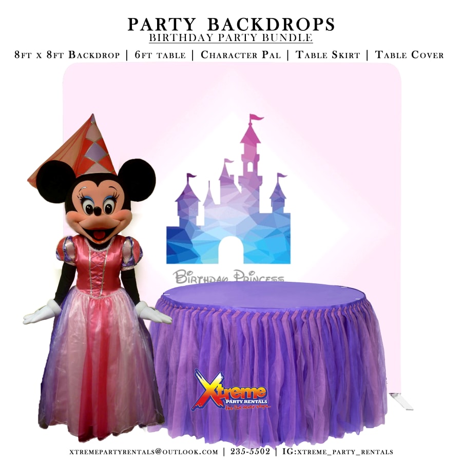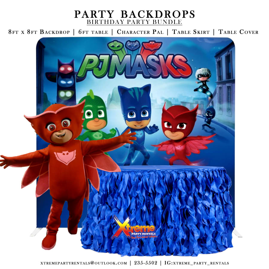 8ft Backdrop, Table Skirt & Character Pal